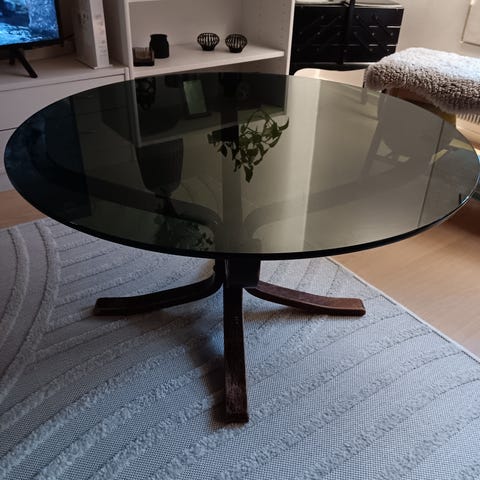 Myydään pyöreä sohvapöytä. Halkaisia 90cm. Teräsjalat, vankka (kehikkoa ei voi purkaa). Korkeus 63cm. Ei varauksia 2h pidemmäksi aikaa, eikä tinkauksia