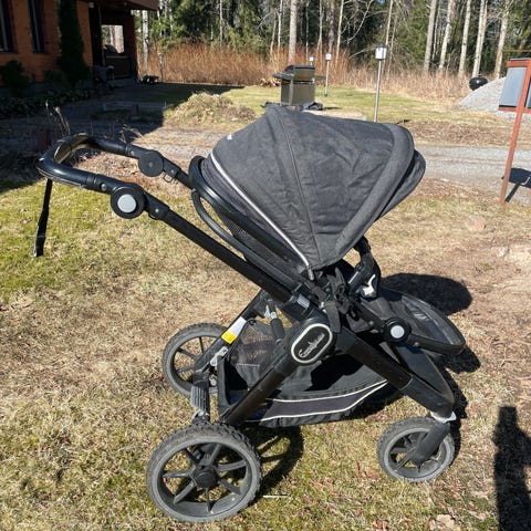 Hyväkuntoiset Emmaljungan yhdistelmät. Musta flat ratasosa, ja harmaa vaunukoppa. Säilytetty aina sisällä, nyt säilytyksestä hieman pölyiset mutta muuten ehjät ja siistit. Puhkeamattomat renkaat, eturenkaat kääntyy mutta saa myös lukittua suoraan. Koiratalous