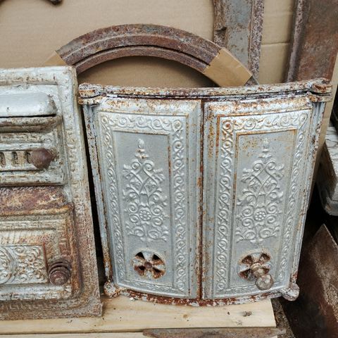 Tarjolla puhdistetut kaakeli kokoamis varten. Ei numeroitu. Kaakelit purettu kahdesta identtisestä uunista. Tarjolla on melkein kahden uunin tarpeet. Kauppaan sisältyy uuniin luukut.
