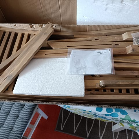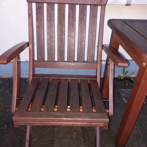 Puutarhatuoli valmistettu kovapuusta, selkänojan kallistus säädettävissä. Täysin ehjä ei kolhuja.