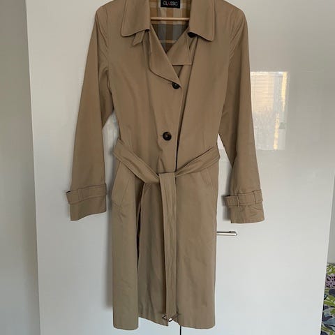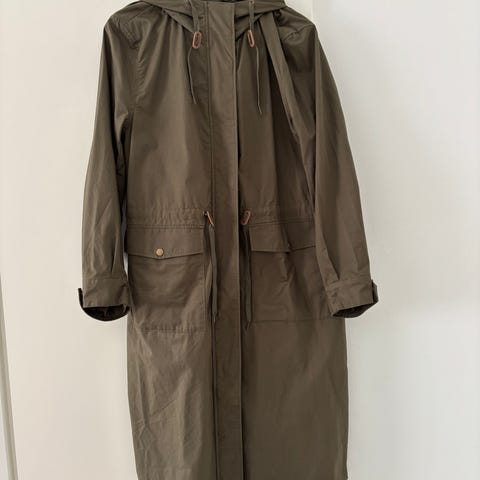 Part Two naisten trenssitakki. Koko 36, sopii myös 38 kokoa käyttävälle. Vihreä, oliviin vivahtava sävy. Materiaali puuvillaa. Kaksirivinen nappikiinnitys, irrotettava vyö ja kauluskäänteet. Pituus reiden alapuolelle. Soveltuu arki- ja kaupunkikäyttöön ulkotakkina. Uusi, ei käytetty, ostettu keväällä 2026.