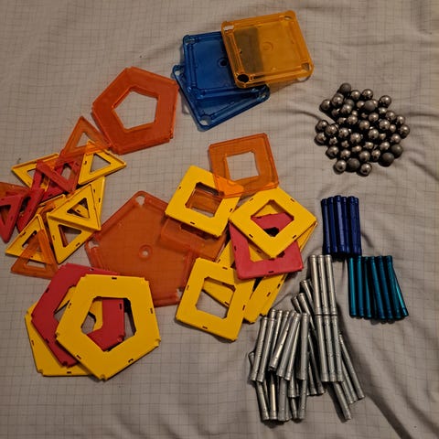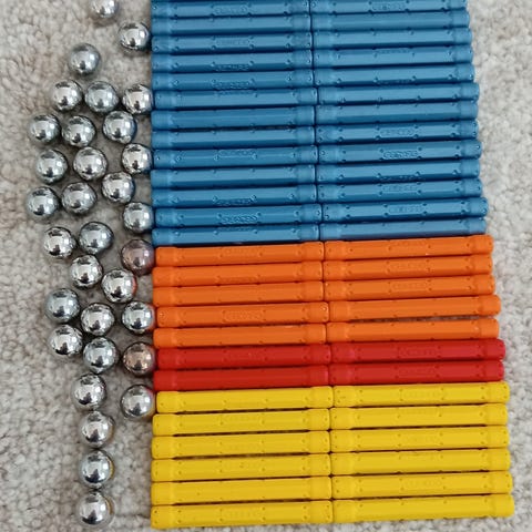 Magneetti rakennussetti. Pakkaus ja rakennusohjeet mukana. Vain yksi oranssi lapa puuttuu, joita kuvan mukaan on 16kpl. Postitus tai nouto.