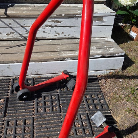 Myydään tukeva ja toimiva moottoripyörän tai mopon nostopukki / huoltoteline sekä huoltopukki.