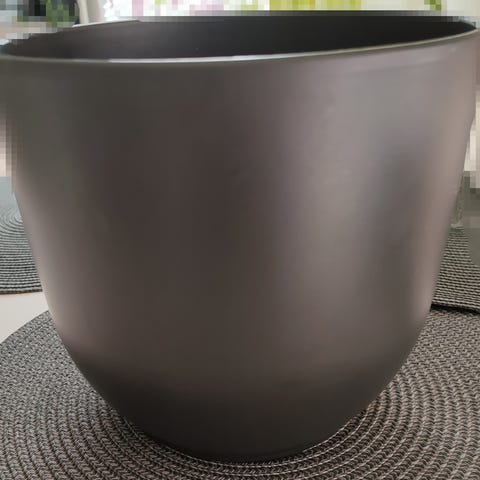 Harmaa, uritettu pinta ja pyöreä muoto. Sopii esimerkiksi viherkasveille tai kukille. Materiaali keraaminen tai vastaava kovapintainen materiaali. Yhdessä ruukussa näkyy pinnassa kulumaa tai jälkiä, jotka eivät vaikuta käyttöön.
