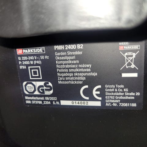 Parkside oksasilppuri puutarhajätteen, kuten oksien ja risujen, silppuamiseen. Laitteessa on vihreä runko ja musta yläosa sekä keräyspussi silputulle materiaalille. Soveltuu kotipuutarhan oksien pienentämiseen helpompaa kuljetusta ja kompostointia varten. Sähkökäyttöinen malli, jossa runko on sijoitettu pyörälliseen telineeseen liikkumisen helpottamiseksi.