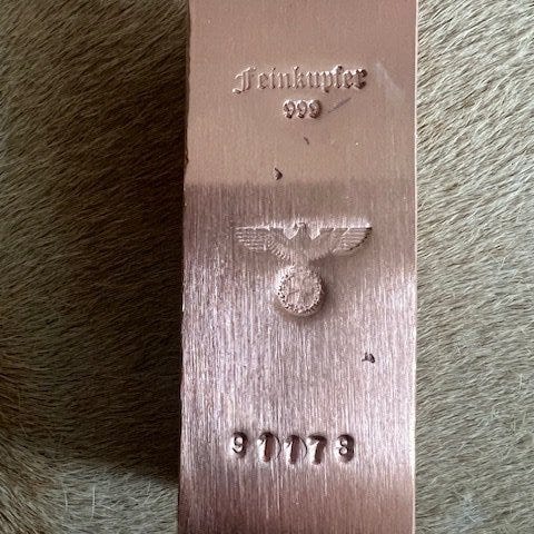 1 kuparipalkki 1,024 kg 999er puhdas kupari Vintage "Deutsches Kaiserreich"1 Kg kuparipalkki (puhdasta ja kiillotettua).Korkean puhtauden vintage-tyylinen kuparipalkki „Deutsches Kaiserreich“ koristeeksi ja sijoitukseksiNämä yksilöt painavat yhteensä 1024 gKuparipitoisuus 99,9% puhtausTodistus aitoudesta (paino, metalli, puhtaus)