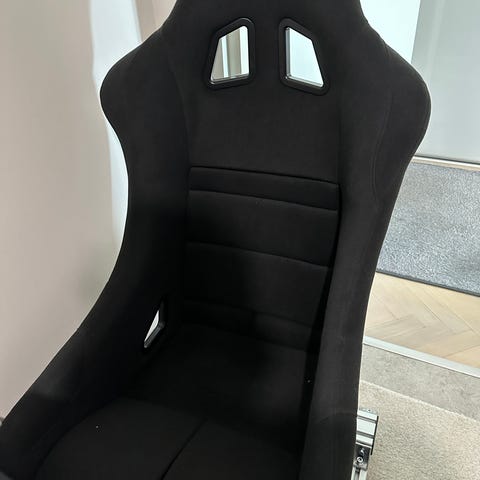 Auton kuppi-istuimet, joissa korostetut sivutuet ja integroidut niskatuet kahdella vyöaukolla. Kuvissa näkyy kulumaa verhoilussa, erityisesti käsinojan/ sivutuennan alueella. Myydään istuimet kuvien mukaisessa kunnossa.