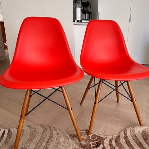 Myydään Vitra Eames DSR tuoli. Musta istuinosa, kromatut jalat. Hienossa kunnossa ⭐️🪑. Valmistusvuosi 2017, joten tässä uudempi korkeampi istuinkorkeus.