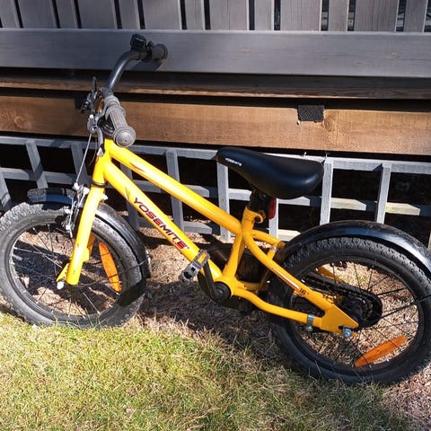 Yosemite lastenpyörä 12" renkailla, väriltään pinkki. Käytönjälkiä, mutta hyväkuntoinen. Mukaan saa apupyörät ja työntötangon.