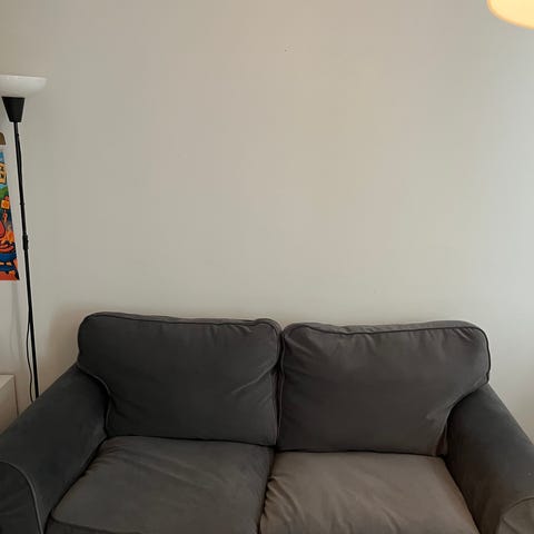 Noin vuoden käytössä ollut kahden hengen sohva. Mukava istua. Sopii pieniin asuntoihin. Alkuperäiset jalat ei kuulu kauppaan, mutta nyt kiinni olevat jalat tulevat mukana, jotka nostavat sohvaa noin 5cm ylemmäksi kuin mittakuvissa.