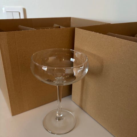 Kolmea eri kokoa samppanjalaseja: pieniä 4 kpl, vetoisuus 15 cl, keskikokoja 4 kpl, vetoisuus 20 cl ja isoimmat 6 kpl, vetoisuus 20 cl.