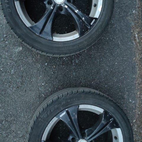 Kuvan siistit vanteet mutta kumit jo huonot näkyy toisessa kuvassa siinä huonoin kumi