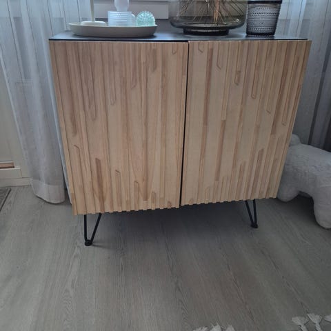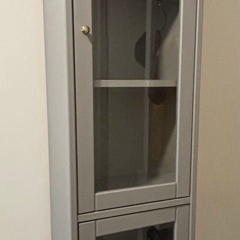 Kaappi lasiovilla . Pientä kiristelyä tarvitsee, muuten kyllä fiksussa ja hyvässä kunnossa.