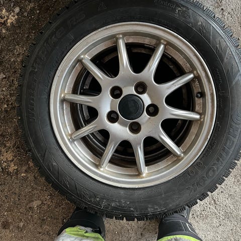 Puolikiiltävän mustaksi maalatut vanteet, jossa Pirellin nastarenkaat. Pintaa kuin uusissa ja nastat tallessa. Suorat ja tasapainossa. Melko äänekkäät, paistoleima -19. Olleet Toyotassa. Nyt halvalla pois varaston siivouksen yhteydessä.