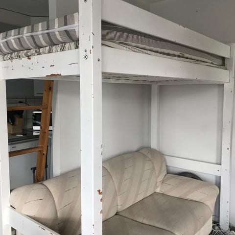 Hyväkuntoinen ja tukeva kokonaisuus. Patjan leveys 80 cm. Säilytystilaa runsaasti. Voidaan purkaa ostajan kanssa, jotta kokoaminen on sitten helpompaa. Voidaan myös kuljettaa lähialueelle.
