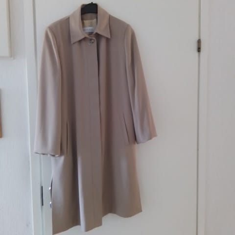 Beigen värinen naisten puolipitkä poplari kokoa 40. Materiaali puuvillaa 68% ja nailonia 32 %.