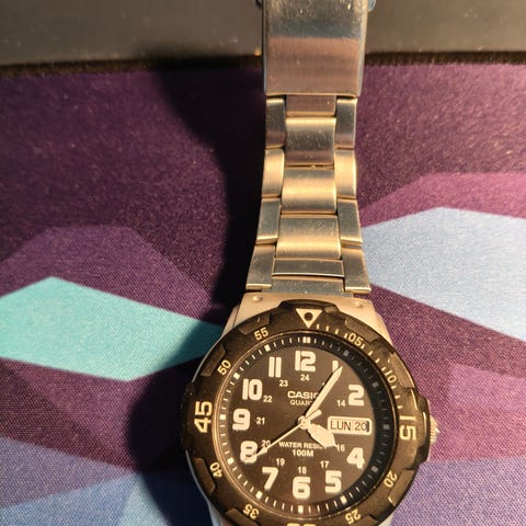 Casio rannekello, ranneke katkennut joten sen joutuu vaihtamaan.