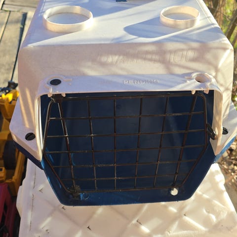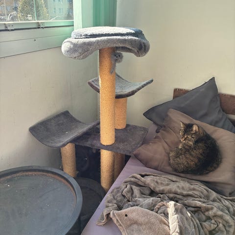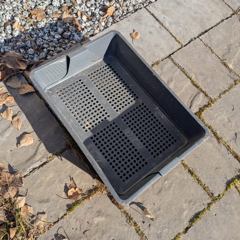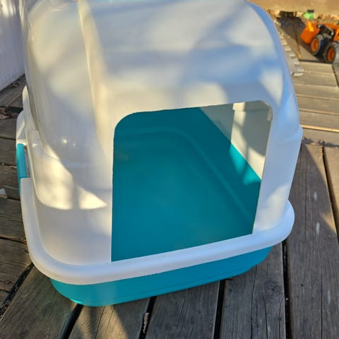 Annetaan avattu kissanhiekkapussi. Melkein täysi.