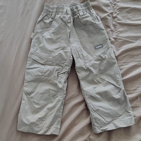 Ulkohousut koko 92, muuten ehjät mutta takana nirhauma (kuva) ei läpi asti reikä