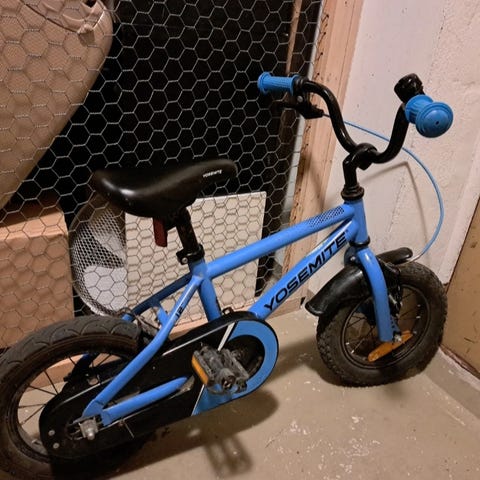 Toimiva Jupiter lasten pyörä työntöaisalla ja apupyörillä pyöräilyn opetteluun. Käytön jälkiä on reilusti, mutta pyörä on toimiva.