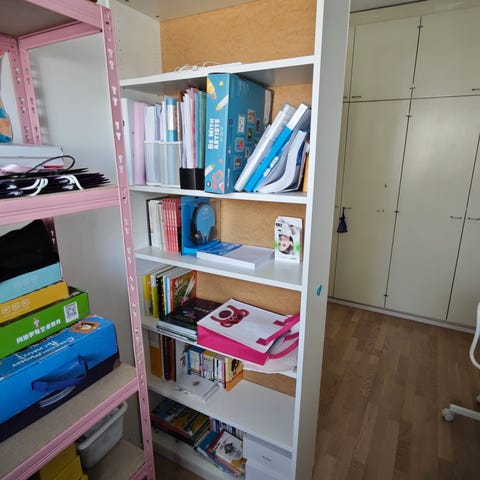 Alaosassa kaapistot. Toisen osan takaseinässä reikä sähköjohtoa varten.