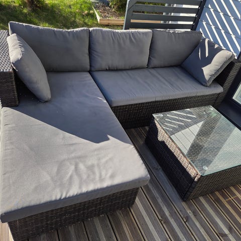 Sohvaryhmä on ehjä ja siisti. Pehmusteet ovat hyvässä/siistissä kunnossa.