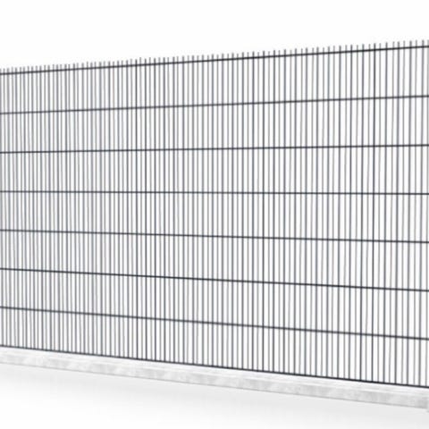 Vihreät metalliset aitaelementit ja tolpat pihapiirin tai alueen rajaamiseen.