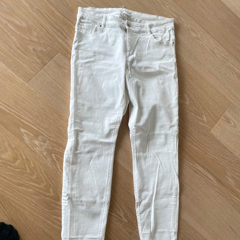 Valkoiset, joustavat pilli farkut. Lahkeensuissa vetoketjun. Siistit ja tahrattomat.