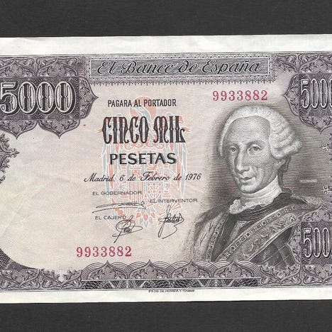 Espanja: kuuden setelin erä1×5 pesetan seteli 19371×5 pesetan seteli 19431×5 pesetan seteli 19451×5 pesetan seteli 19481×5 pesetan seteli 19511×5 pesetan seteli 1954Katso kuvat.Varmennettu toimitus seurantanumerolla.