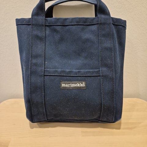 Marimekko kangaslaukku unisex-käyttöön. Laukku on mustaa kangasta ja siinä on metallinen kehys sekä nupillinen kehyslukko. Laukussa on olkahihna ja yksiosainen vuoritettu sisätila pienten tavaroiden, kuten lompakon, puhelimen ja avainten kuljettamiseen. Sopii käytettäväksi arjessa tai juhlakäytössä unisex-laukkuna. Korkeus 17 cm pohjasta nuppiin 😀 leveys 18 cm. Pieniä naarmuja hopeakohdassa, ei vaikuta käyttöön, ei häiritseviä.