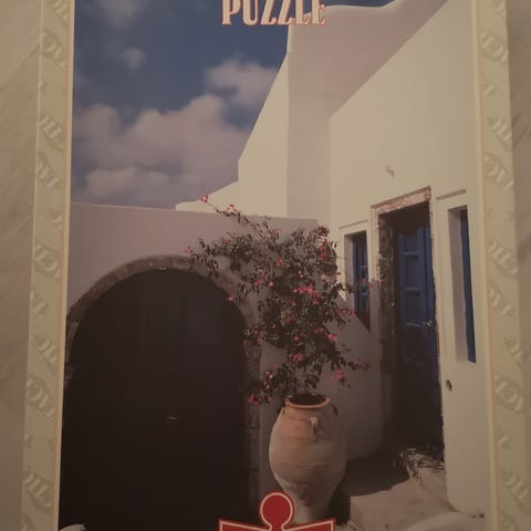 Tactic 500 palan palapeli, jossa kuvassa sininen klassikkoauto värikkäässä katumaisemassa. Kaikki palat tallella.