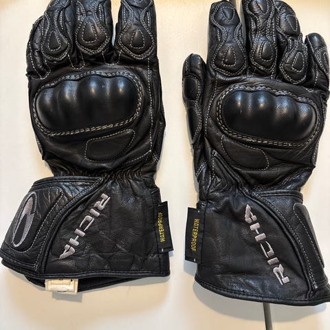 Richa moottoripyörähanskat mustaa nahkaa. Hanskoissa on kovasuojat rystysissä ja vahvistetut alueet kämmenissä lisäsuojaa varten. Ranteessa on tarrakiristys istuvuuden säätämiseen. Soveltuvat moottoripyöräilyyn ja muuhun ajokäyttöön, jossa tarvitaan suojaavia nahkahanskoja.