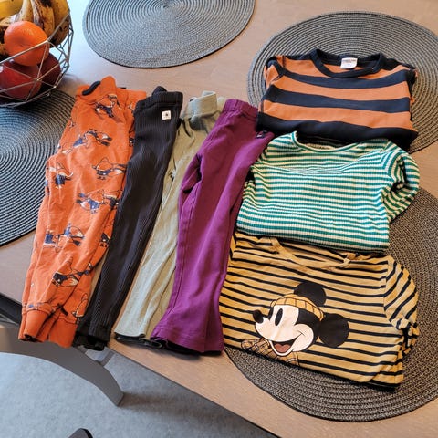 T-paitoja ja yksi lindexin shortsipyjama.Kahdella tosi paljon pidettyjä.Menee jo 86 koossa,näitä kuivausrummussa paljon pyöritetty ja ovat mallia lyhyt muutenkin.Haalistuneet ja kangas ohentunut kaikissa.Hinta kaikille.
