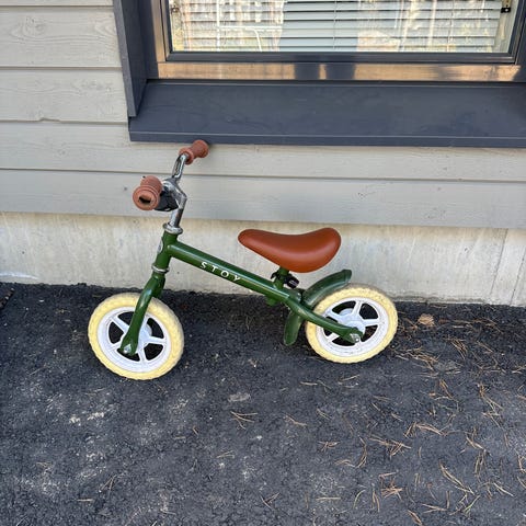 Tämä Strider-potkupyörä on nähnyt maailmaa, kokenut vauhdin hurmaa ja selvinnyt hiekkalaatikkokisojen tiukoista mutkista. Se on täysin toimiva peli, joka on valmis uusiin seikkailuihin heti, kun kuskin jalat ylettävät maahan.