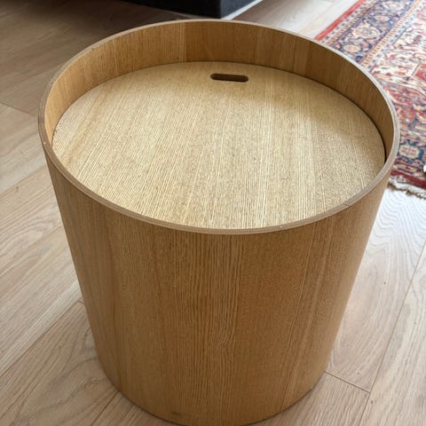 Kevyt puinen pöytä, jossa muovinen istutussyvennys. Hyvässä kunnossa, mutta kuvan mukaista naarmua.