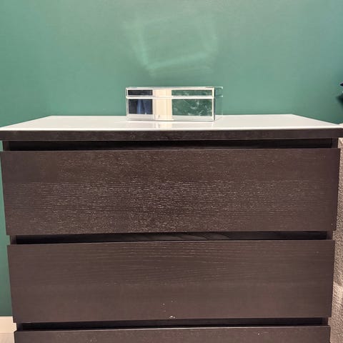🗄️ Hyväkuntoinen IKEA MALM Lipasto lasilevy päällä, 3 laatikkoa, valkoinen, on myytävänä.