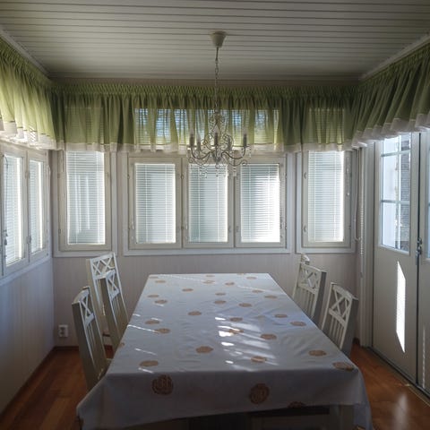 Hieno, todella hetken käytössä ollut kappaverho paksua pitsiä, väri kaunis vaalean vihreä. Kuja verhotangolle. Ehjä ja puhdas.