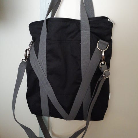 Ehjä ja perussiisti, mutta koska laukku on tehty kierrätysmateriaalista, on kankaassa luonnollisestikin käytönjälkiä.