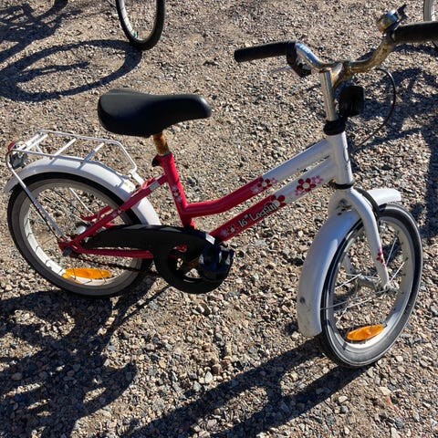 Uutena meille tullut ja yhdellä lapsella käytössä ollut Stoyn kestävä polkupyörä. Mukaan tulee apurattaat, jotka olleet meillä käyttämättä. Lisään kuvan myöhemmin.