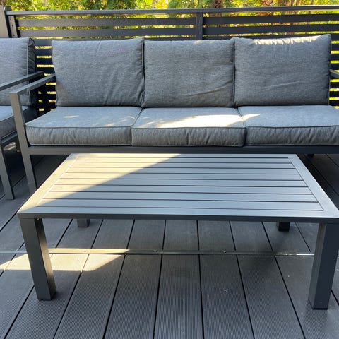 Ikean Segerön 2 istuttava sohva. Ollut lasitetulla parvekkeella yhden kesän. Suojus ollut päällä. Ei moitteita. Saa irrotettua erillisiksi
