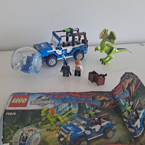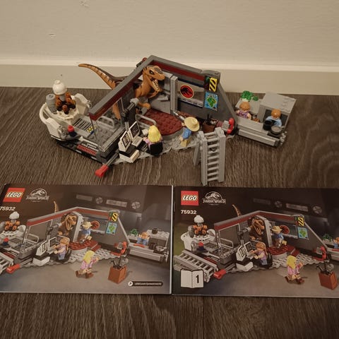 LEGO Jurassic World rakennussarja, jossa on useita rakennettavia osia. Kuvat näyttävät ainakin kaksi isoa dinosaurushahmoa sekä helikopterin ja laboratorio-/tukikohdan kaltaisia rakennelmia. Sarja koostuu pienistä LEGO-palikoista ja sopii Jurassic World -teemaisiin leikkeihin ja kokoelmiin. Tarkka palikkamäärä ja sarjanumero eivät käy ilmi kuvista.