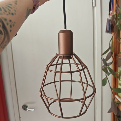 Valkoinen lampunvarjostin, halkaisija ylhäällä 19.5 cm, alhaalla 25 cm. Hyvä kunto.