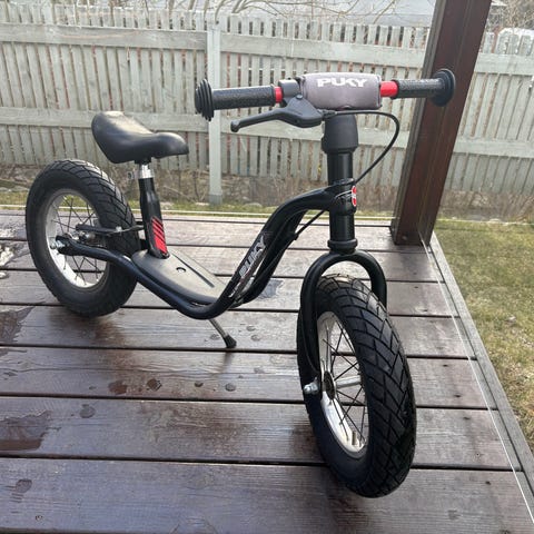 Ihan paras ensipyörä tasapainon opetteluun ja tämä oli meillä suosikki pitkään vielä sen jälkeenkin, kun oppi ajamaan tavallisella pyörällä.