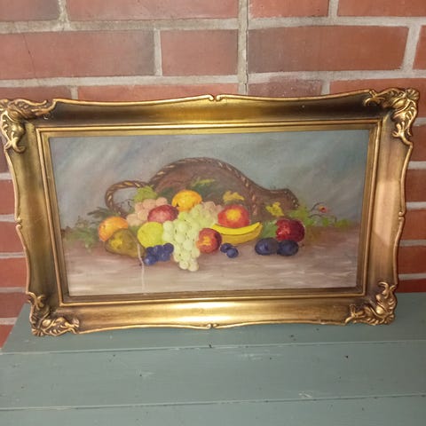 Myydään kuvanmukainen siistikuntoinen taulu jossa aiheena hedelmäkori (fruit basket)