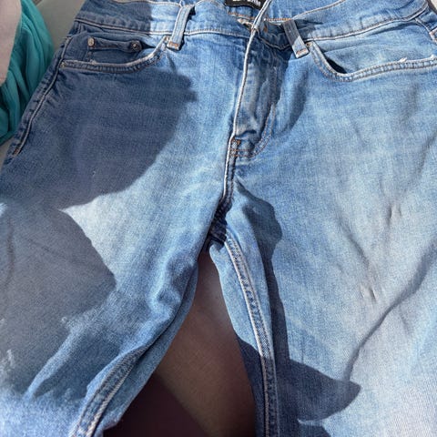 Annetaan tekonahkashortsit, jotka muuten hyvässä kunnossa, mutta pieni värivirhe oikean taskun kohdalla (kuva 3). Saanee peitettyä kangasvärillä tms. Joustavaa materiaalia.