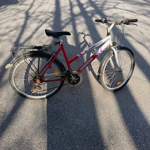 Annetaan White Maastopyörä ilman takapyörää ja ketjua.