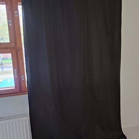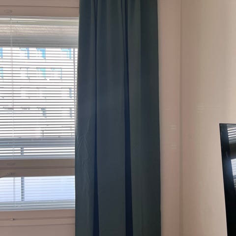 IKEA pimentävät Mariam verhot. Verhossa on isot metalliset ripustusrenkaat yläreunassa, jotka sopivat verhotankoon pujottamiseen.