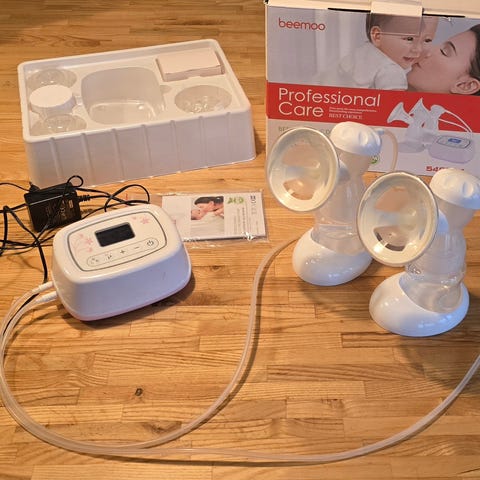 Käytetty mutta erittäin hyvässä kunnossa oleva beemoon tupla rintapumppu. Kaikki osat on desinfioitu ja laatikossa on mukana muutamat varaosat.