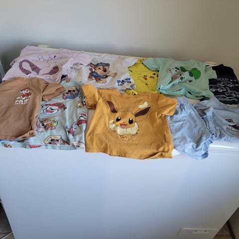 H&m ja kappahl.Kahdella paljon pidettyjä.Kummassakin hailakkaa tahraa ja marioissa printti kärsinyt.