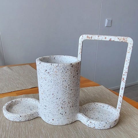 Myydään siisti Humdakin-merkkinen teline tiskiaineelle ja esimerkiksi tiskiharjalle. Korkeus 14 cm. Leveys 23 cm.